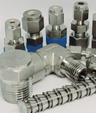 Tubing y elementos de conexionado, accesorios en acero inoxidable, con opción de recubrimiento pasivado para muestras agresivas.